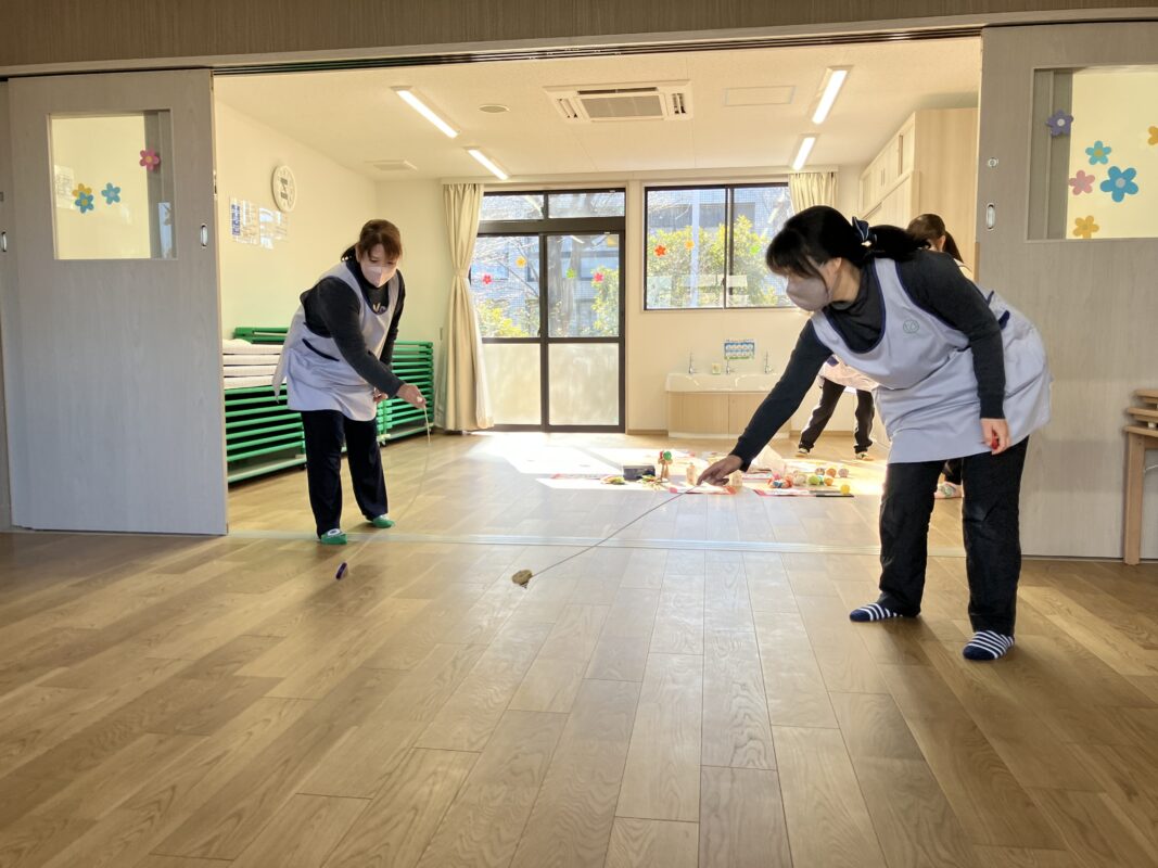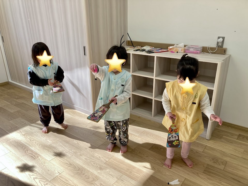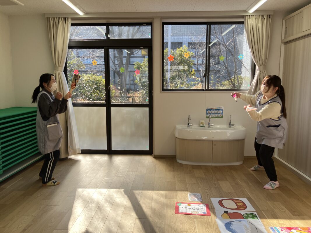 子どもたちだけでなく、職員も含めみんなそれぞれが、お正月遊びを満喫しました!お正月遊び会が終わった後も、「今日は福笑いやる?」「もう一回羽根突きやりたい!」と話す子がいたりと、大満足のお正月遊び会となりました。
